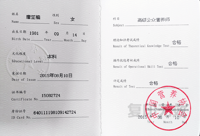 總經(jīng)理唐亞楠獲得高級(jí)公眾營(yíng)養(yǎng)師資格