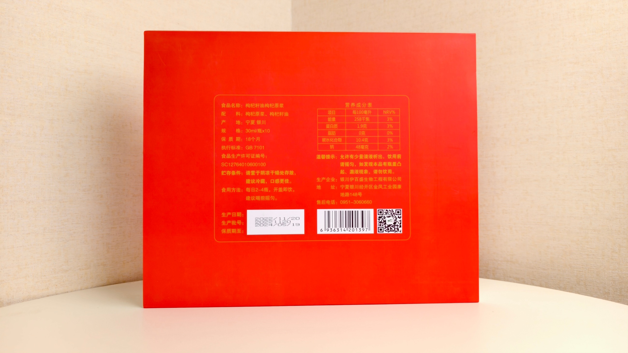 配料:枸杞原漿、枸杞籽油
